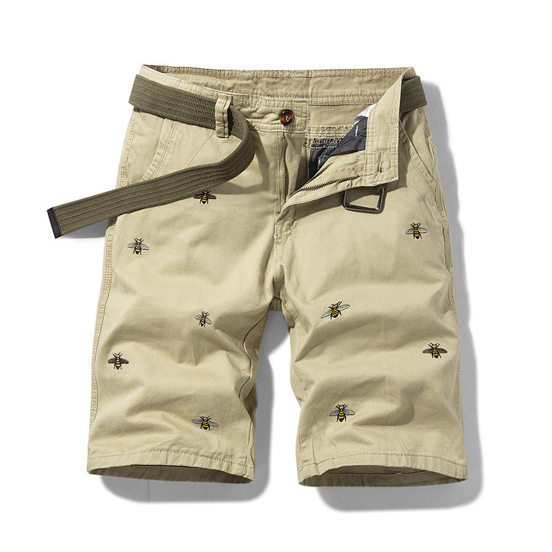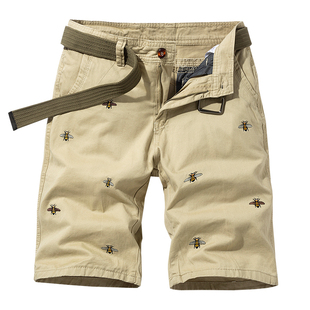 绣花工装 纯棉宽松直筒帅气六分裤 短裤 潮流时尚 男五分韩版 2021新款