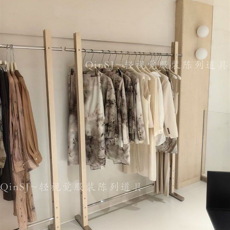 服装 货架衣服落地挂衣架陈列架定制 店展示架不锈钢桦木海洋板服装
