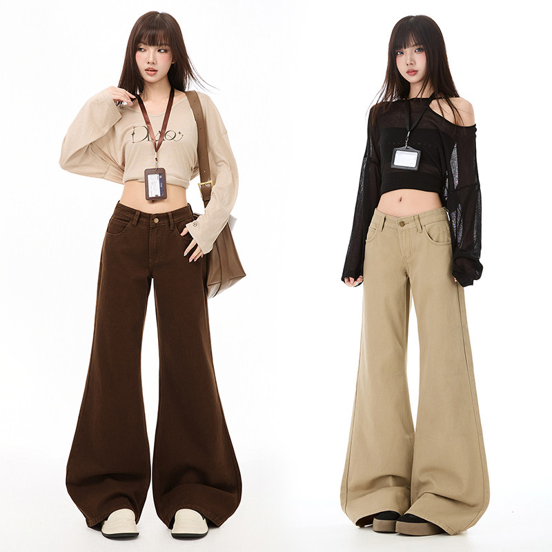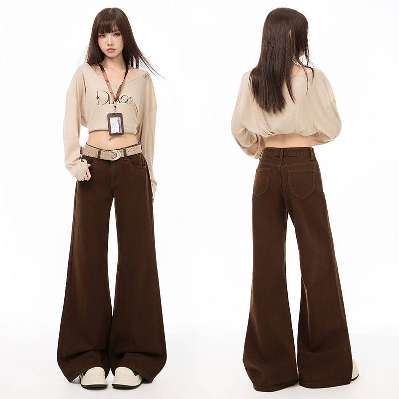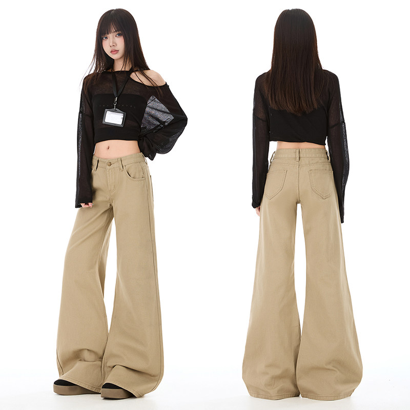 子 女春秋弹力百搭显高拖地马蹄裤 烟灰色高腰修身 显瘦微喇叭牛仔裤