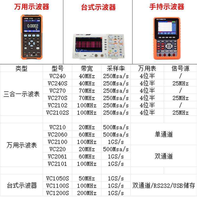 手持万用表示波器二合一小型汽修用 2102S便携式 胜利VC240S 270S