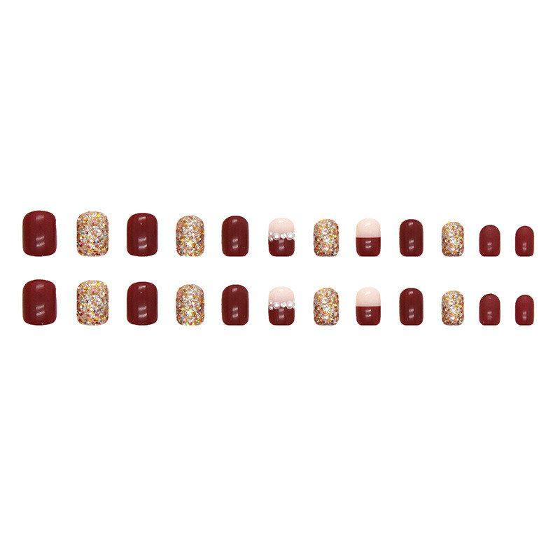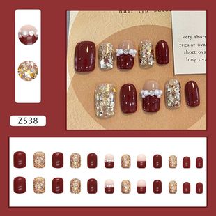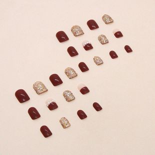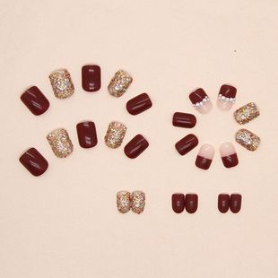 酒红色爆闪碎片穿戴甲节日氛围新年感美甲片新娘款 假指甲nails
