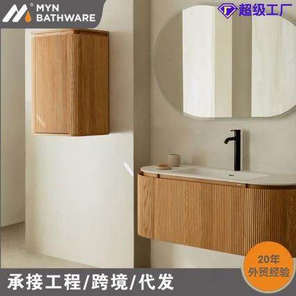 实木奶油风智能浴室柜组合卫生间洗漱台悬挂式 洗手洗脸盆柜陶瓷盆