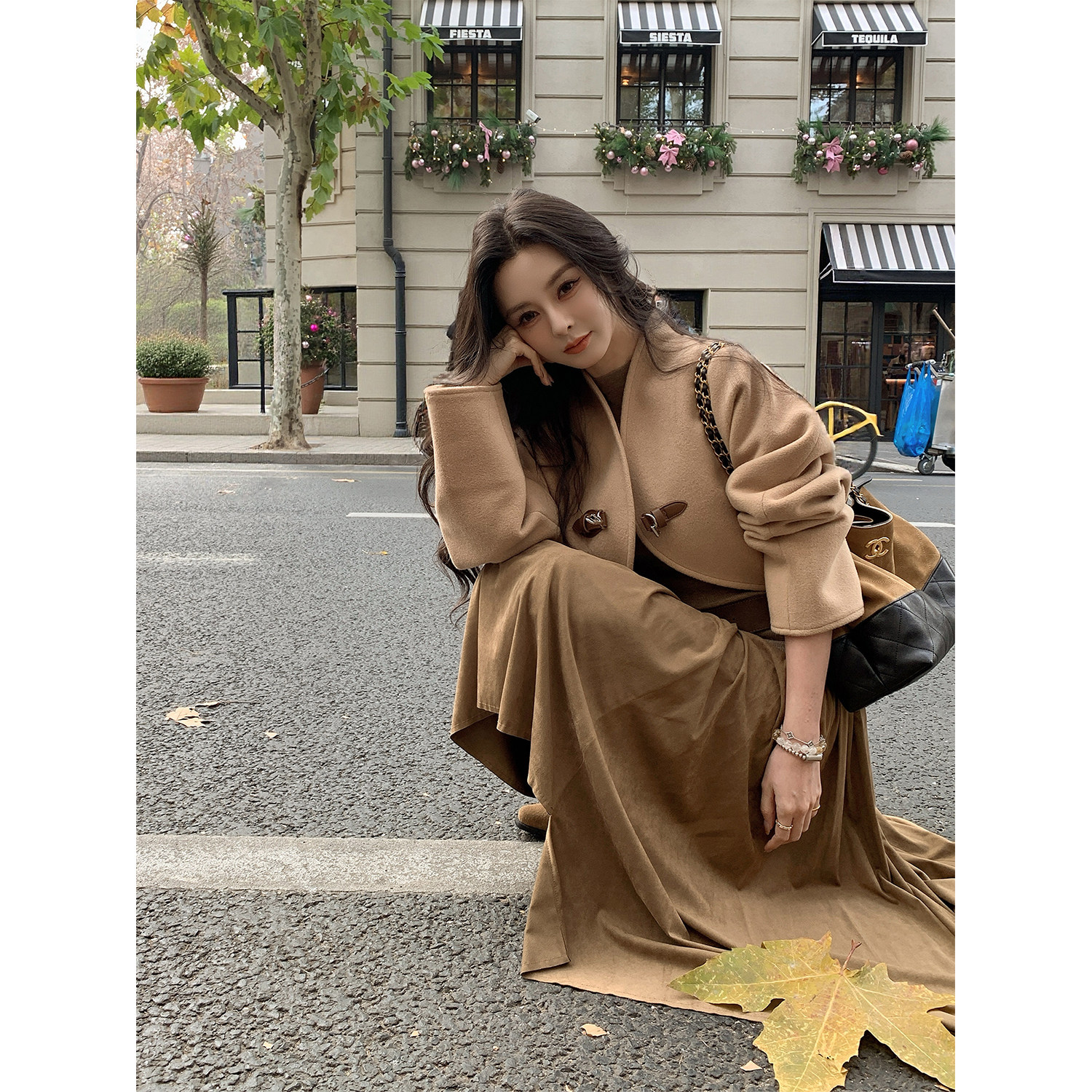 徐琳「比弗利老钱」私服定染驼色羊毛海岛绒斗篷大衣 10AM