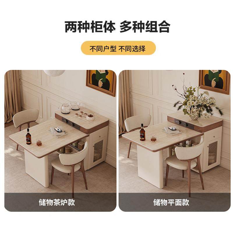 2025新款 中古风厨房家用伸缩岛台餐桌一体小户型现代简约实木饭桌