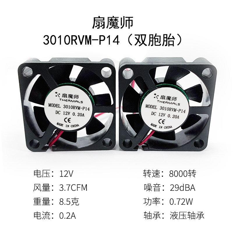 扇魔师Thermals P14低转3CM12V车载导航双胞胎风扇 液压3010RVM
