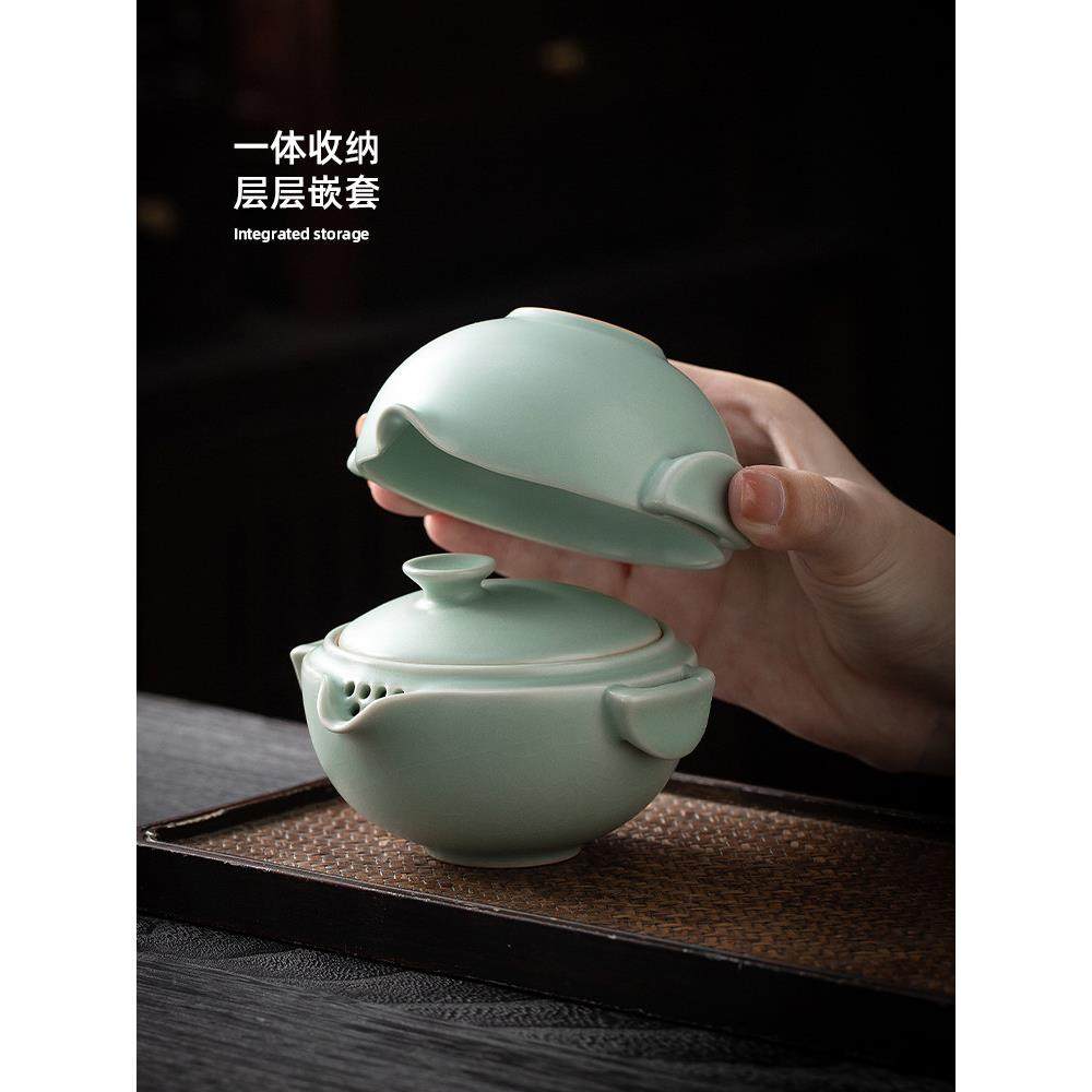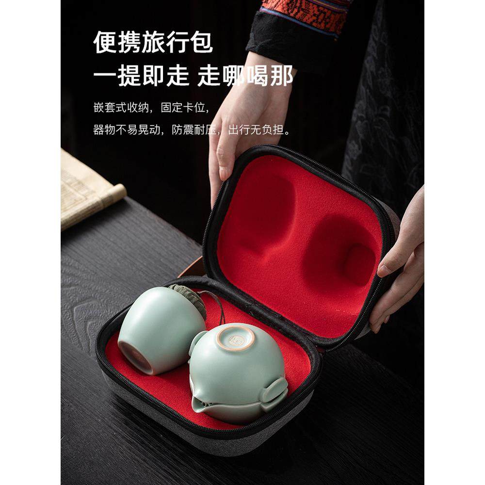 盖碗茶杯茶壶 喝茶2025新款 黄汝窑旅行茶具套装 家用功夫户外便携式