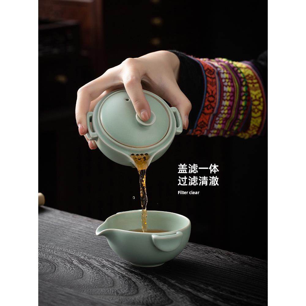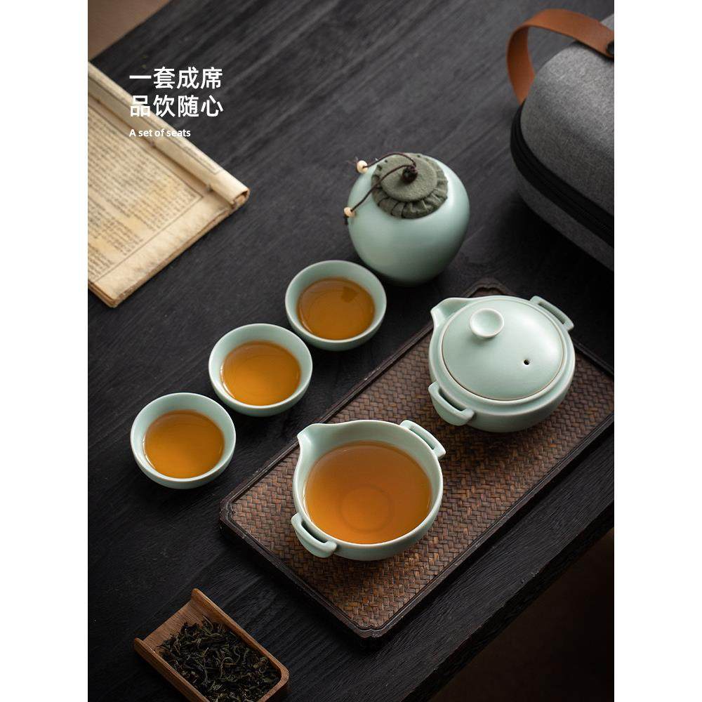 功夫泡茶壶 包户外家用露营日式 哥窑旅行茶具小套装 一壶四杯便携式