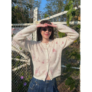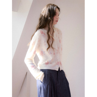 粉紫调晕染印花简约温柔风针织开衫 羊驼羊毛混纺 Vintage Even