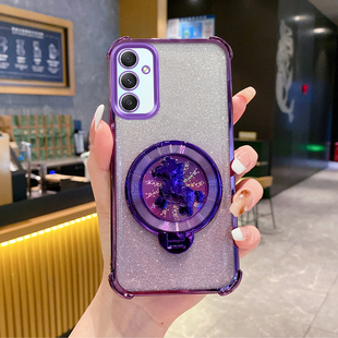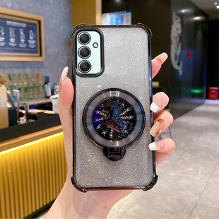 三星A34手机壳新年款 超薄保护套 马上有钱气囊防摔全包软壳适用GalaxyA34高级感奢华创意旋转陀螺支架简约时尚