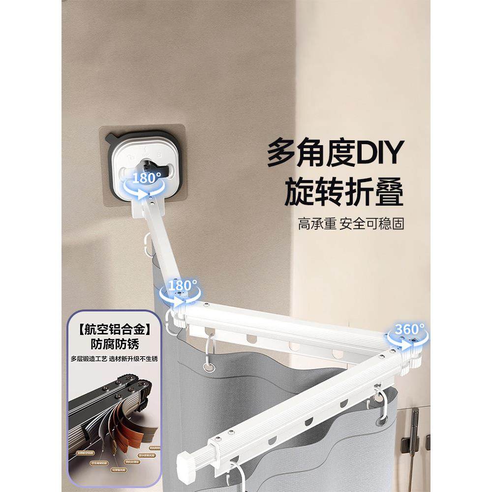 伸缩免打孔晾晒杆安装 浴帘杆卫生间晾衣杆可伸缩强力支撑晾衣架杆