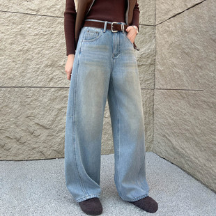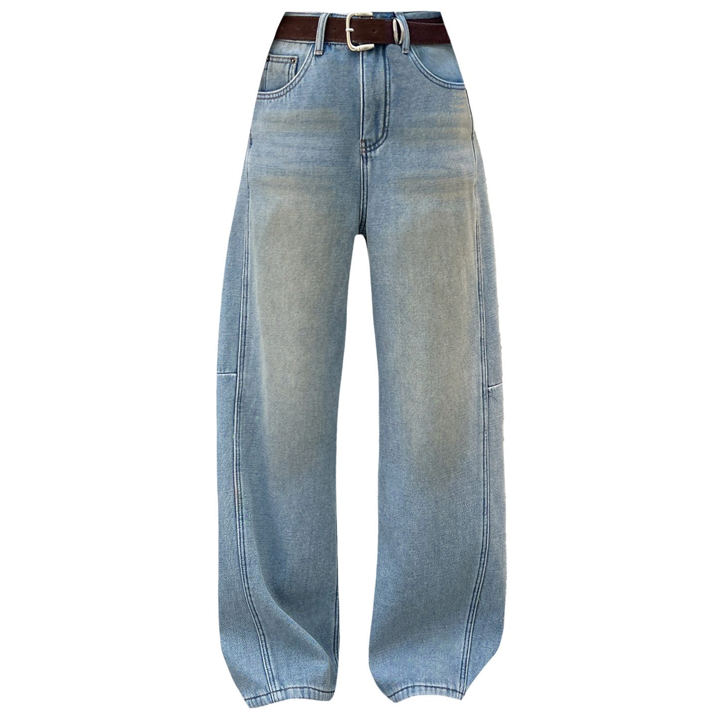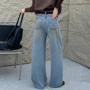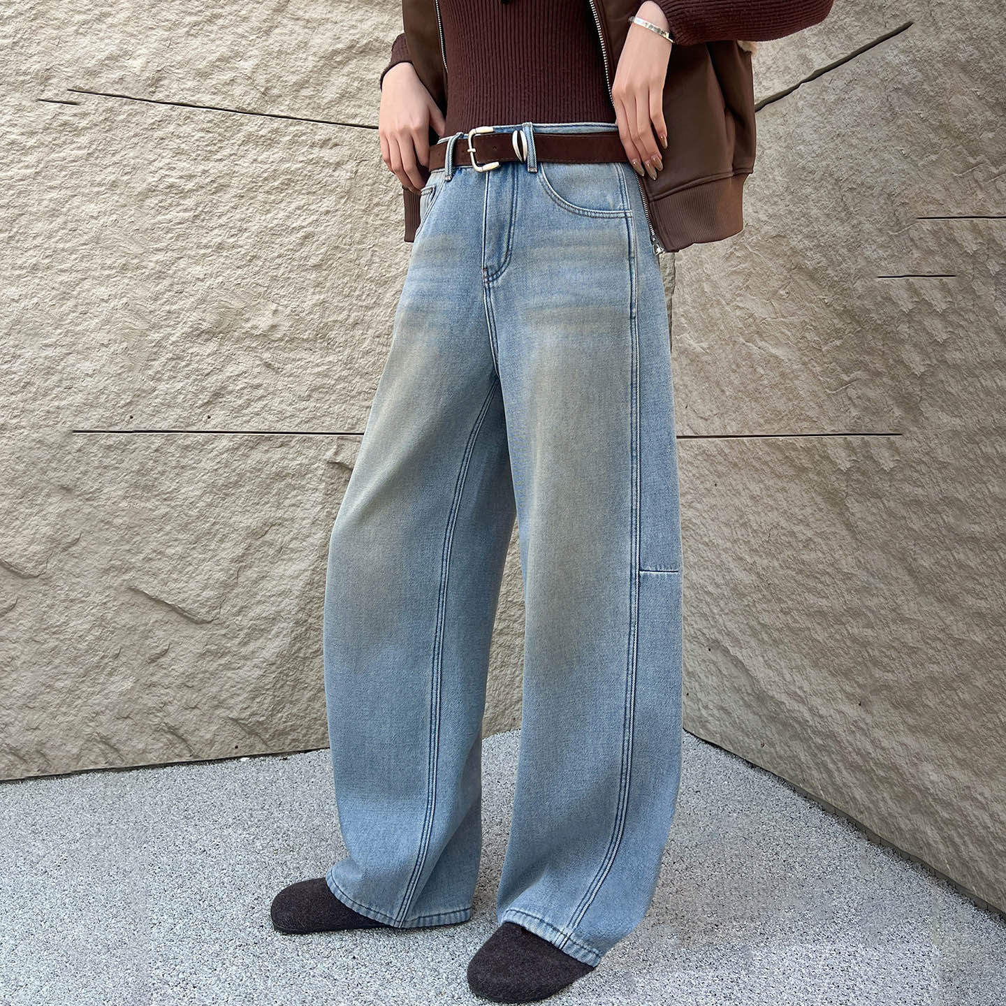 2025冬季 Jeans大企85267加厚宝宝绒保暖宽松显瘦女牛仔老爹弯刀裤