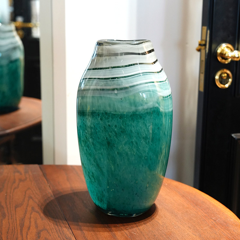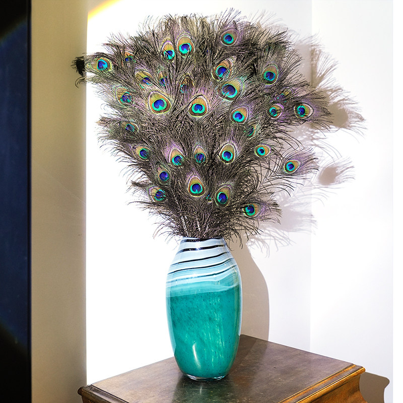 孔雀翎铜青琉璃花瓶家居桌面装 饰艺术摆件玄关水培插画花器PT48