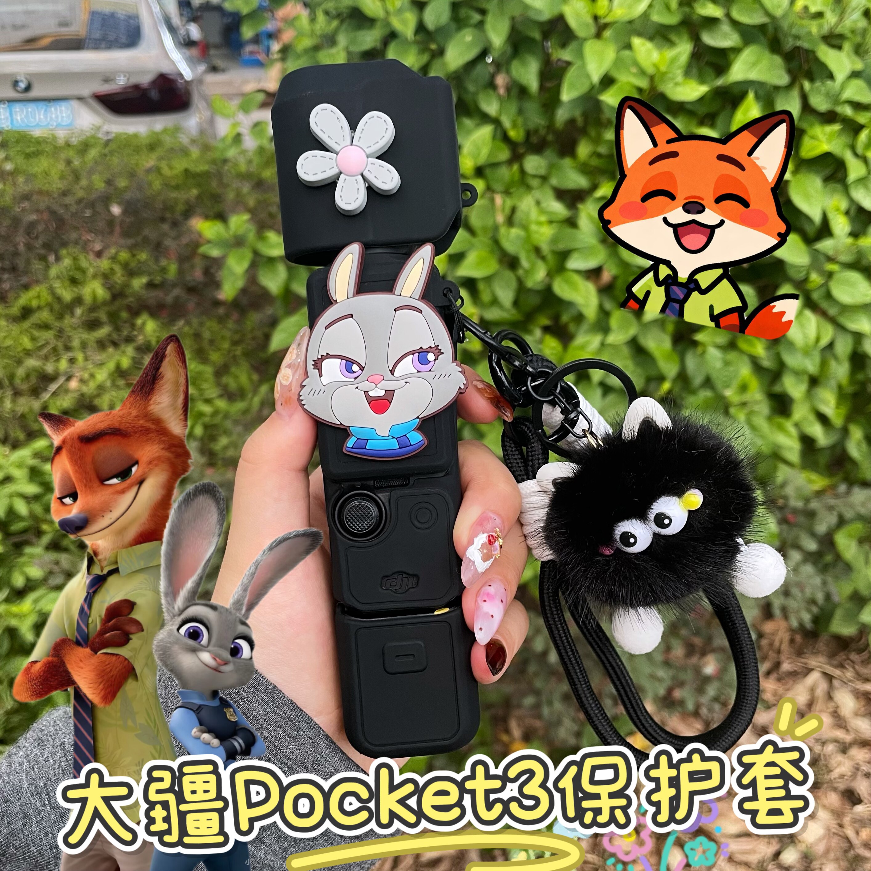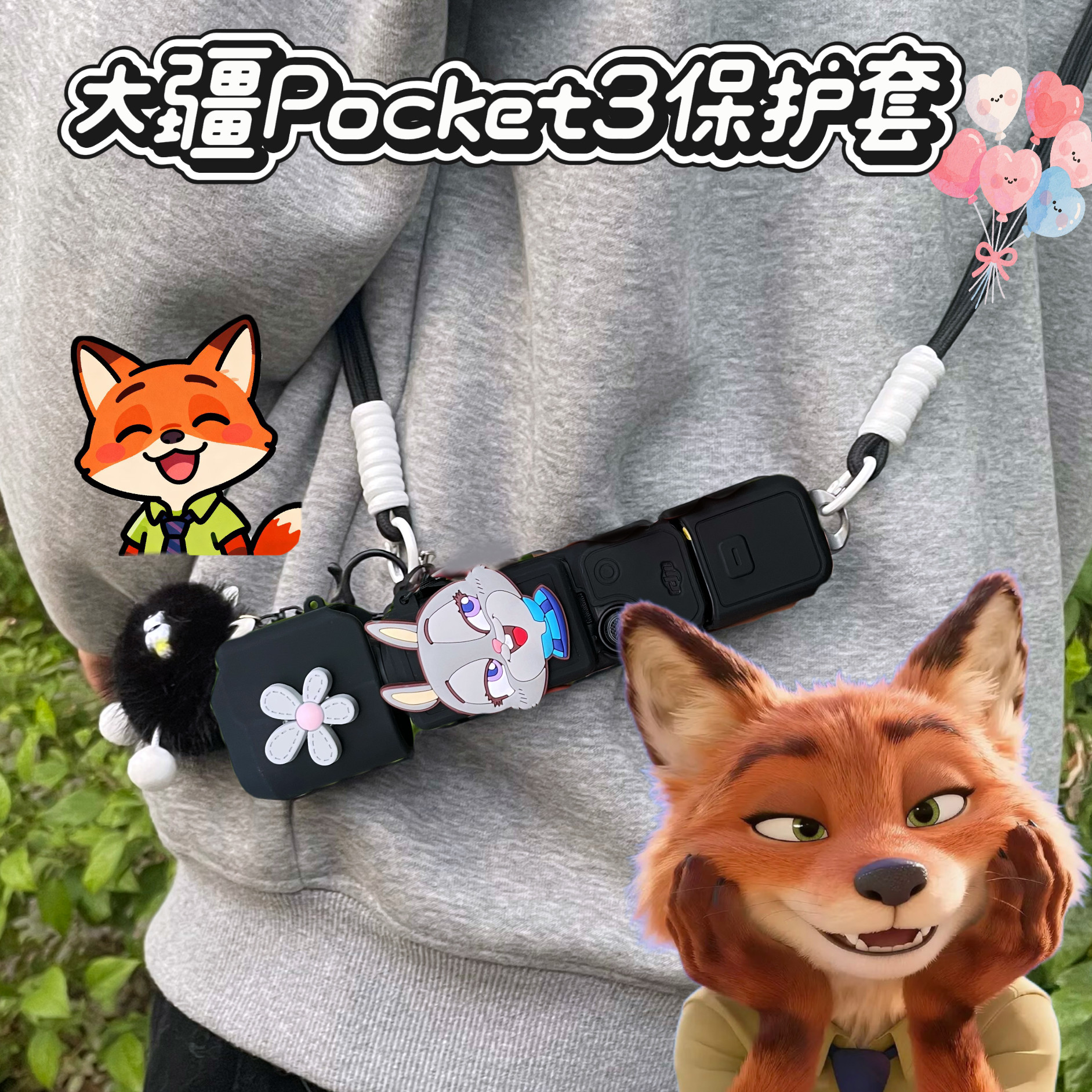 大疆Pocket3保护套镜头朱迪尼克软硅胶收纳相机配件壳斜跨绳挂脖