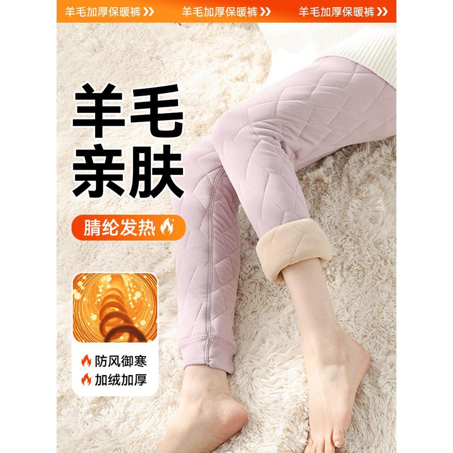 菇娘家澳洲美丽诺羊毛灰色打底裤 袜 女冬外穿加厚保暖压力瘦腿连裤