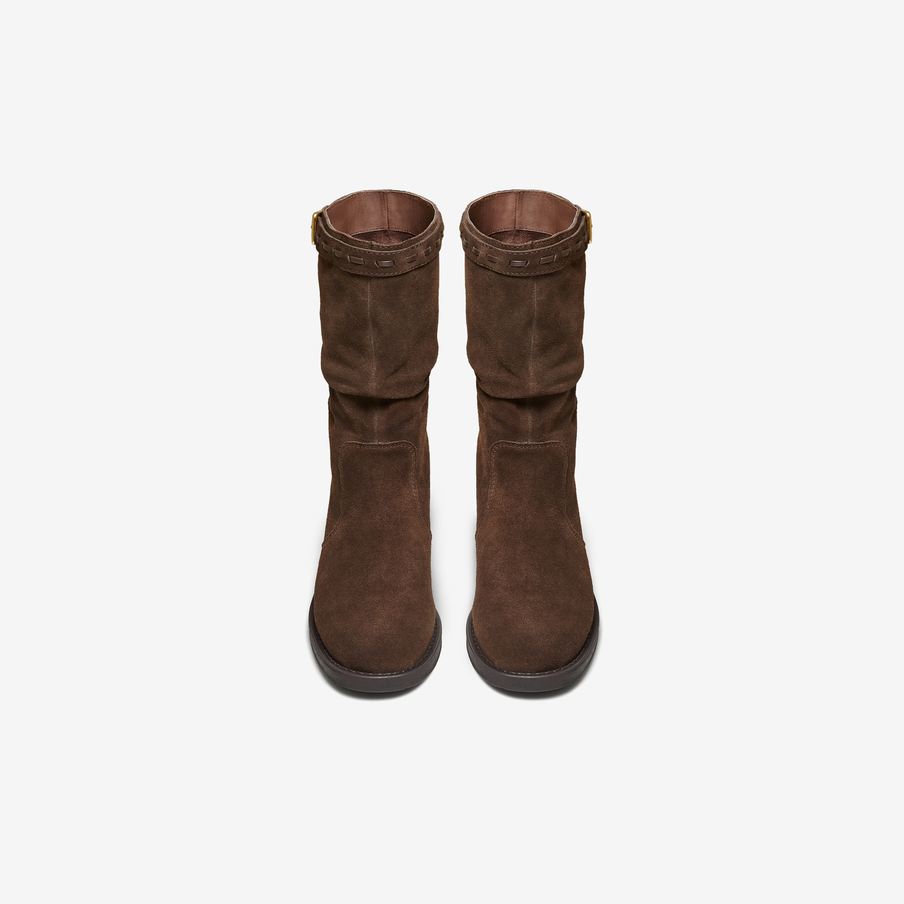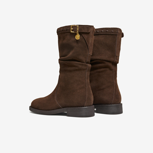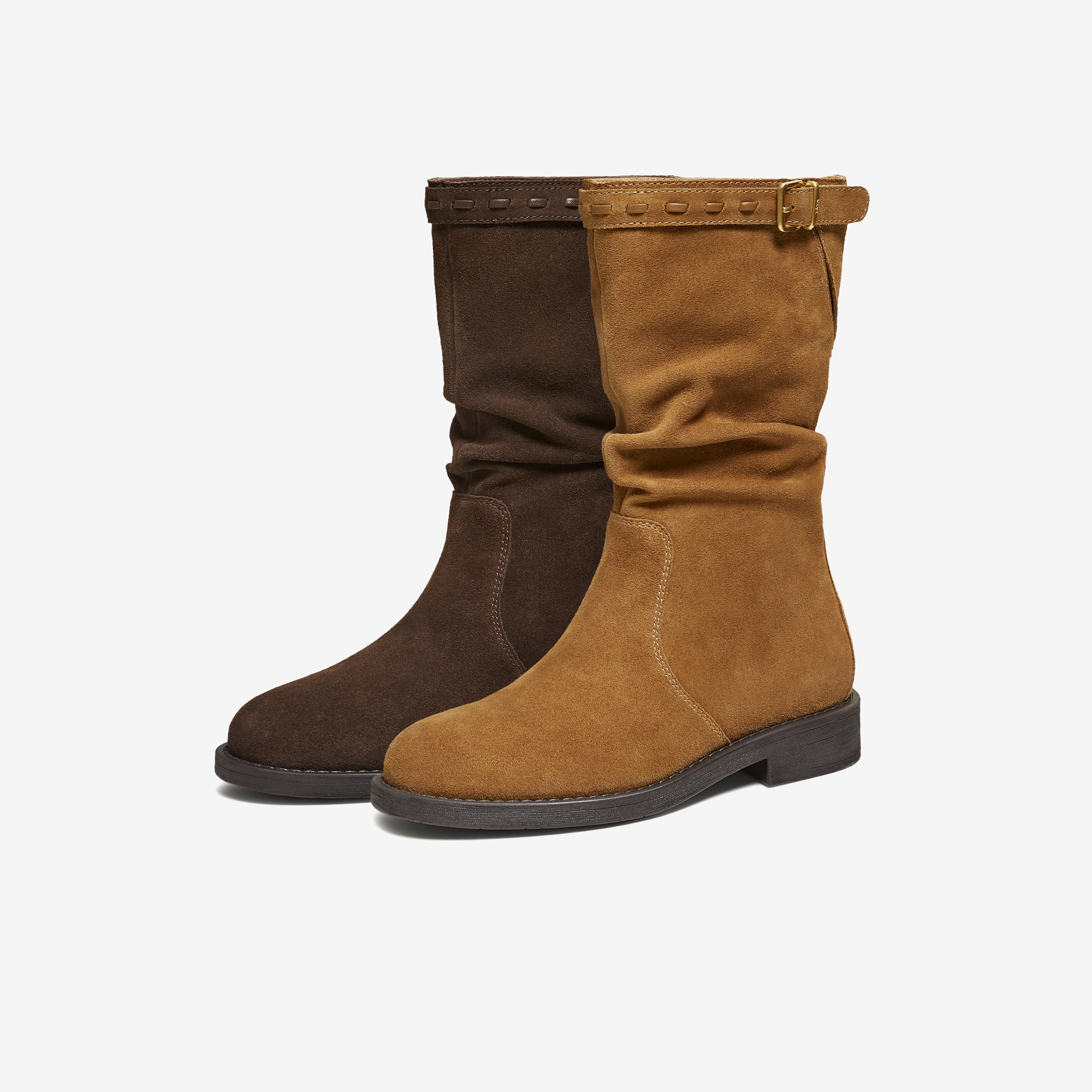 百丽画廊假日加绒时装 弹力靴反绒面粗高跟显瘦瘦短靴子BBWB1DZ5