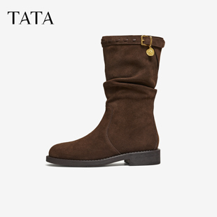 TATA他她喵爪靴2025冬季 靴弹力靴女靴瘦瘦靴加绒短靴CEG07DZ5 时装