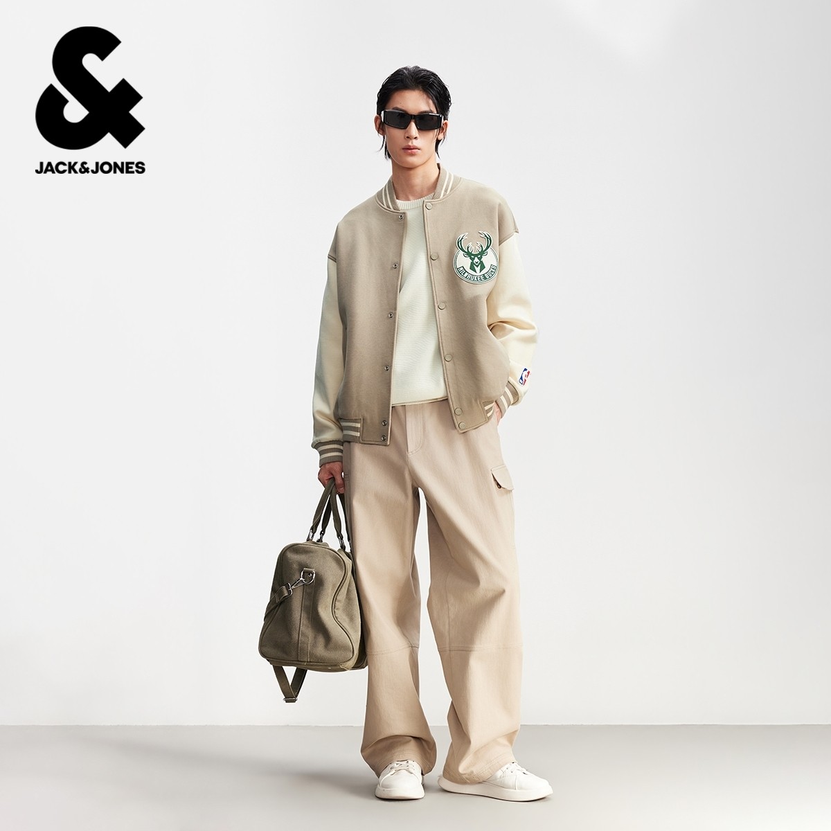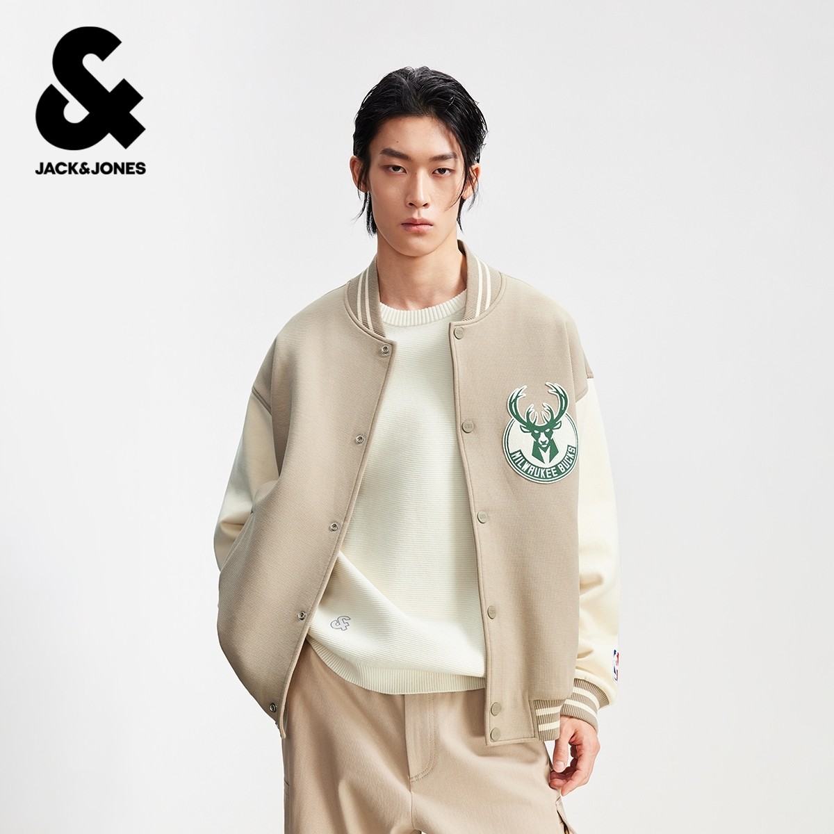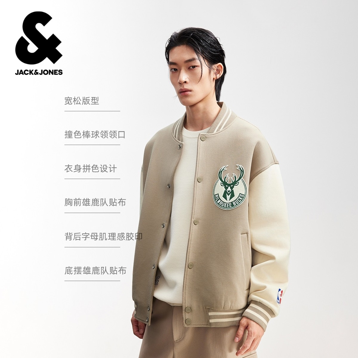 杰克琼斯外套男26年春季 雄鹿队 夹克拼色棒球服男装 NBA联名款
