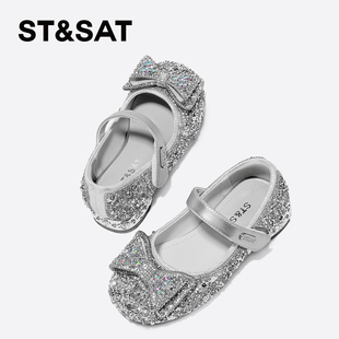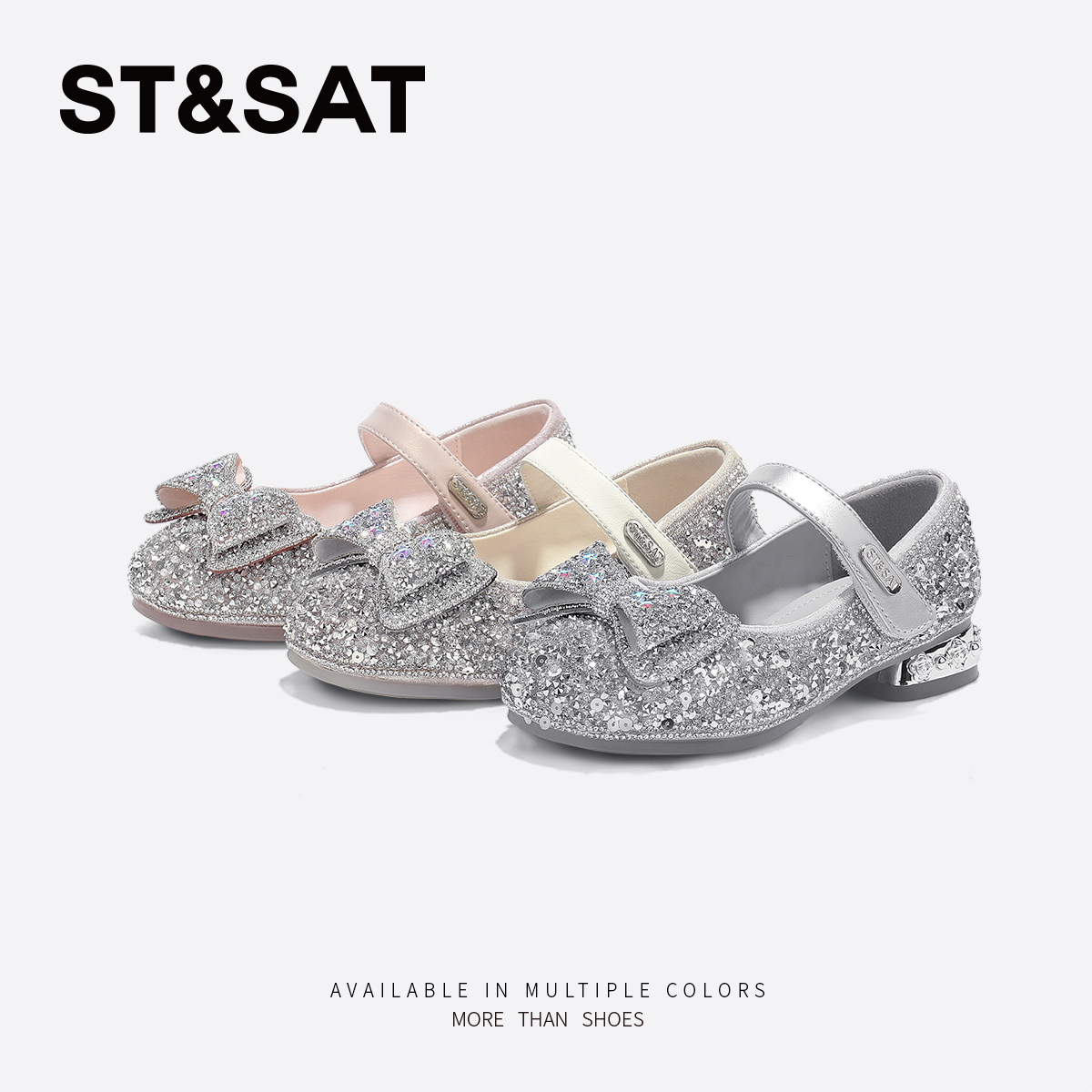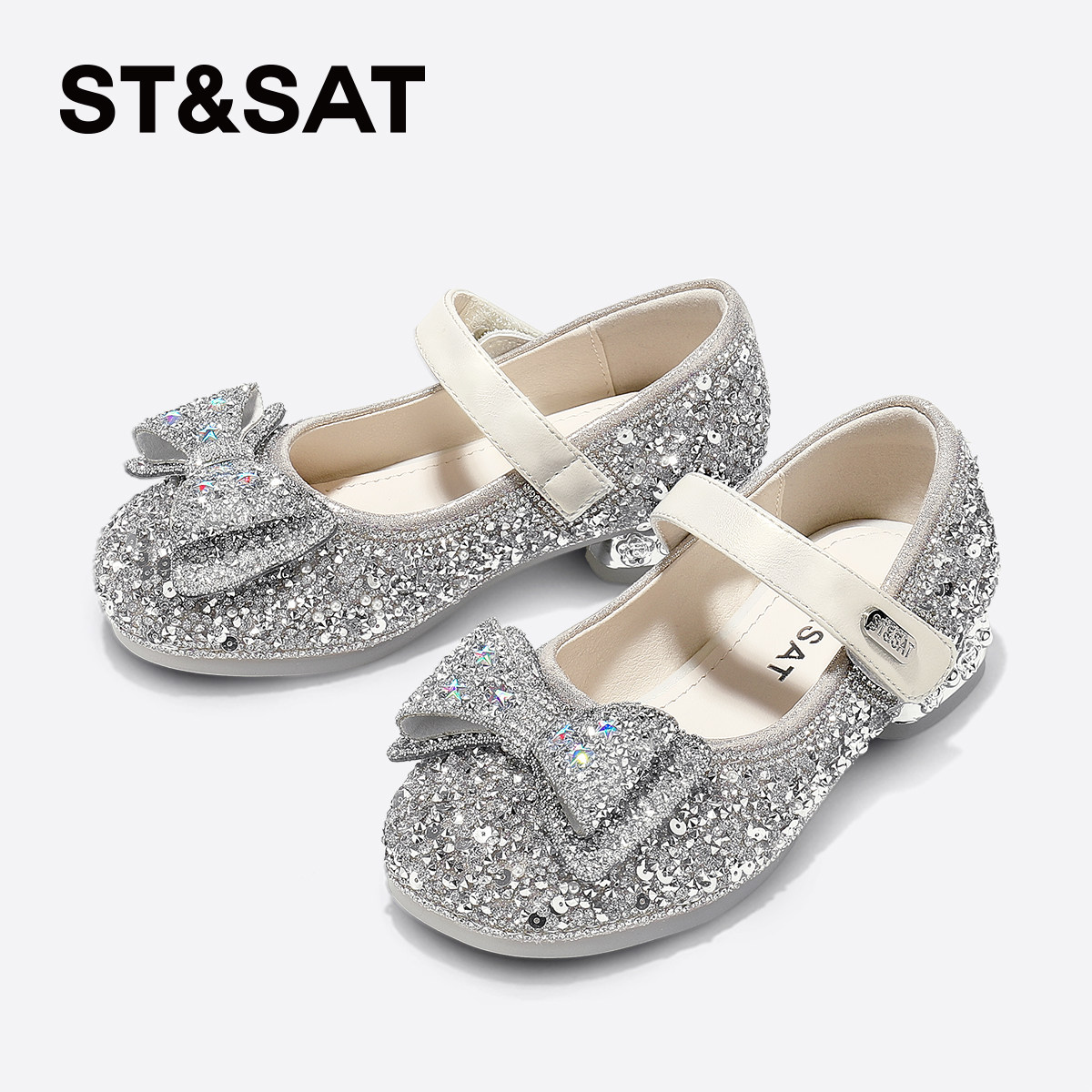 新款 女春季 时尚 女童演出鞋 星期六童鞋 儿童舞台休闲单鞋 水晶公主鞋