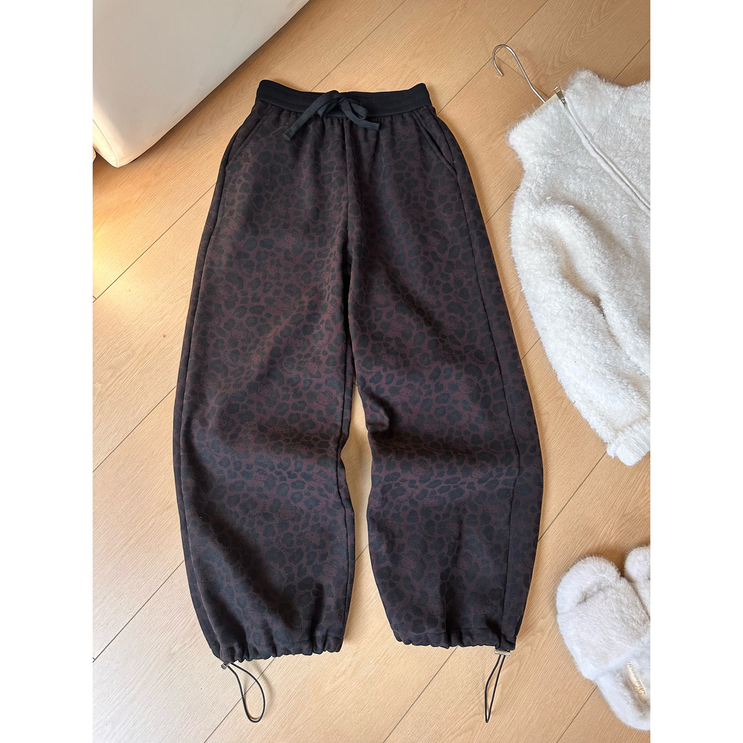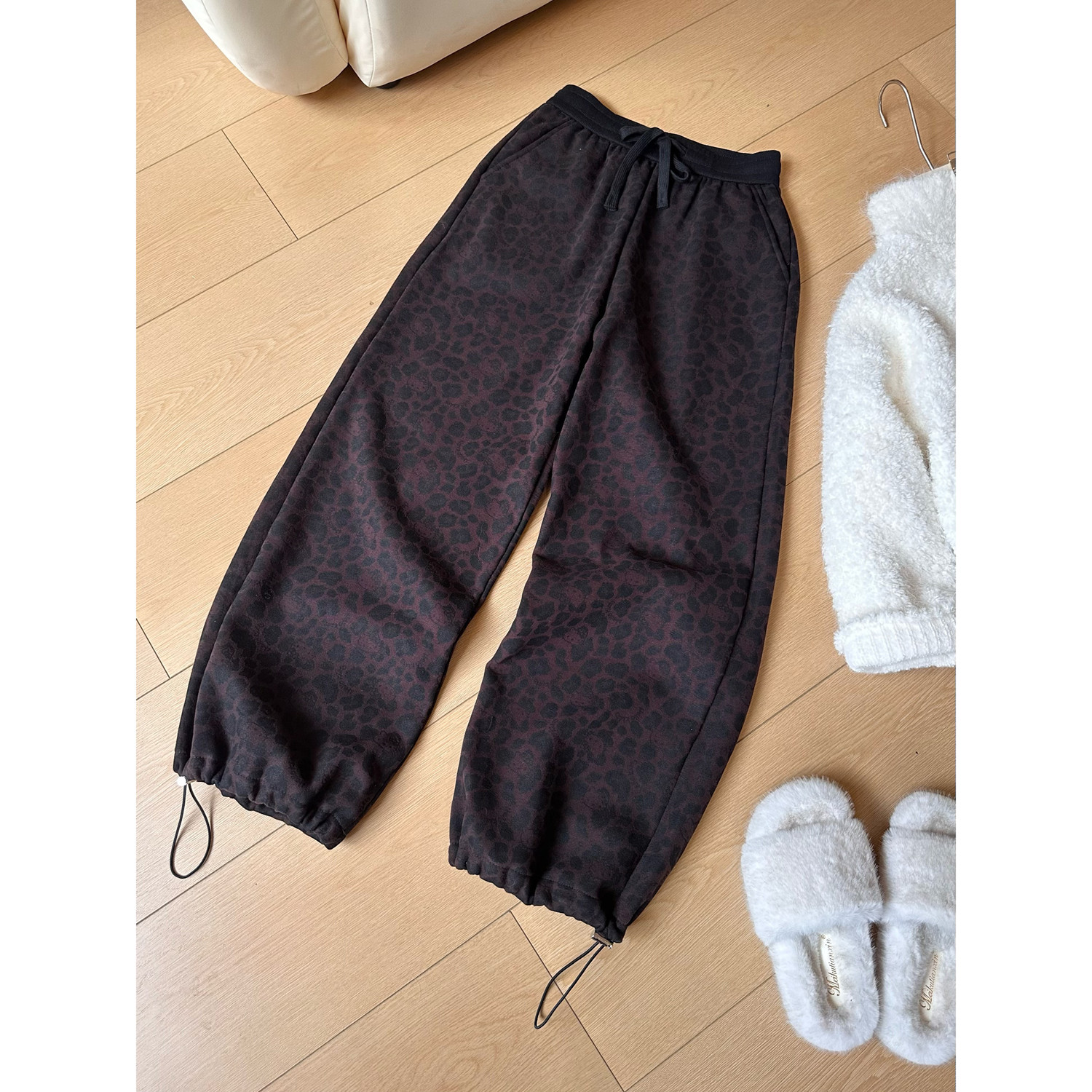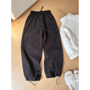 松紧腰抽绳加绒阔腿裤 运动裤 女2025冬季 慵懒风直筒长裤 新款 此外
