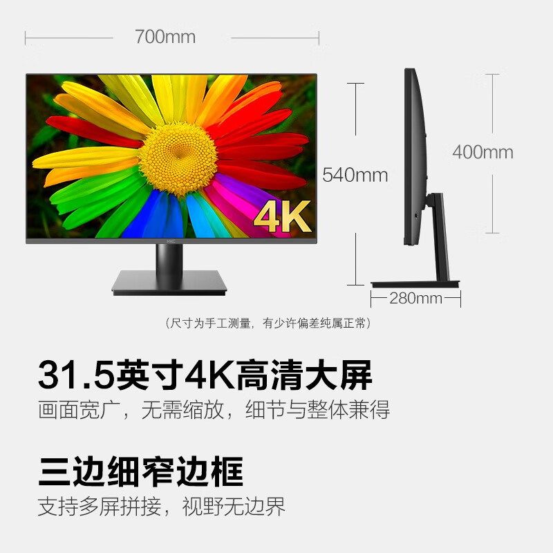 电脑屏升降商用办公壁挂低蓝光3252 32英寸4K高清显示器台式