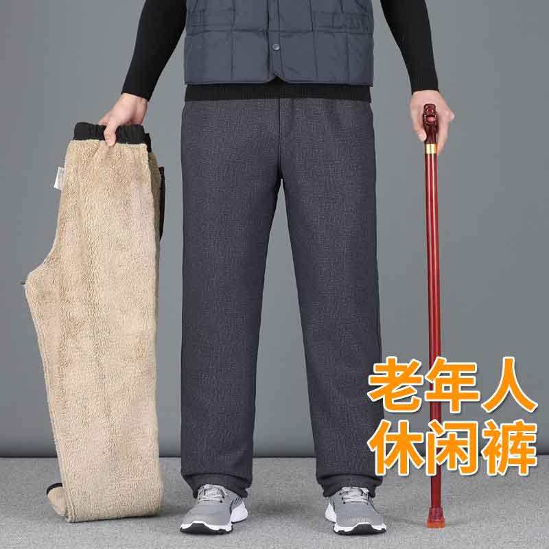 男爸爸裤 加绒加厚羊羔绒宽松70岁80休闲裤 子 老人爷爷外穿棉裤 冬季