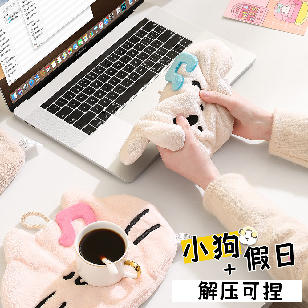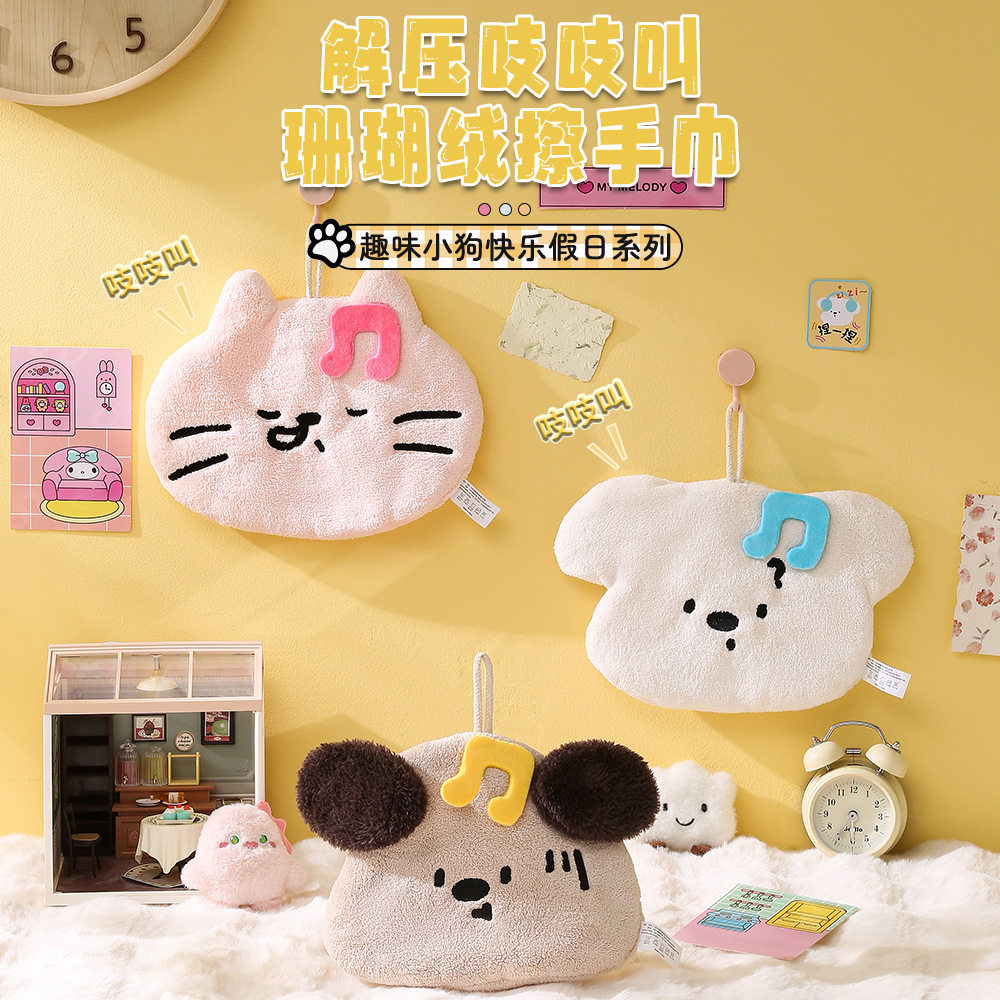 三利颜究所擦手毛巾挂式 可爱卡通擦手帕吸水速干珊瑚绒加厚小方巾