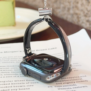 壳里斯iwatch表带S11猫眼树脂金属链条手镯适用S10苹果applewatch华为GT6手表FIT4红米5小米9pro小众高级感SE