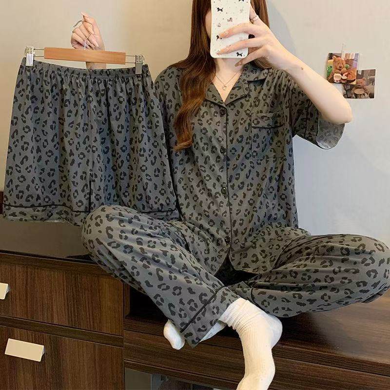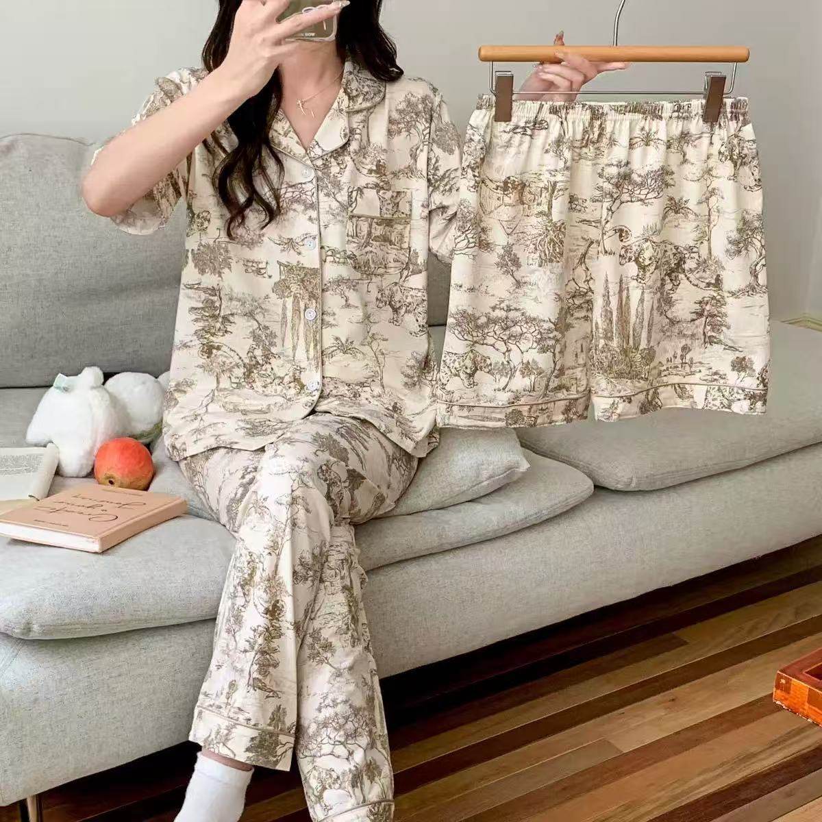 女士少女款 三件套睡衣女夏季 长裤 短裤 可爱家居服 甜美碎花宿舍短袖