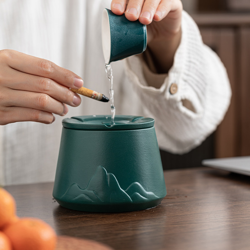 速发晨意 潮流多功能家用客厅办公防陶瓷 烟灰缸室飞带盖创翔个性