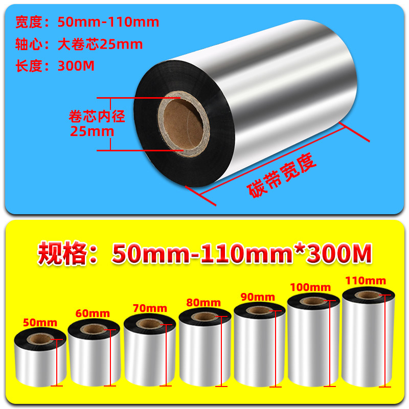 6070 100 打印机不干胶碳带热转印标签腊基碳纸色带卷 诚码 TSC条码 蜡基碳带卷混合基树脂水洗110×300m