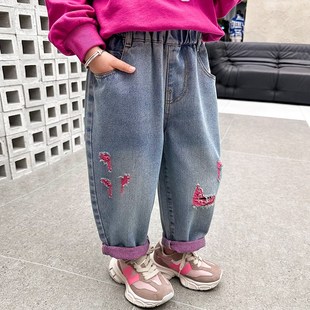 子女装 猫咪加绒加厚休闲卫裤 秋冬季 新款 大码 亚文化阔腿运动裤 美式
