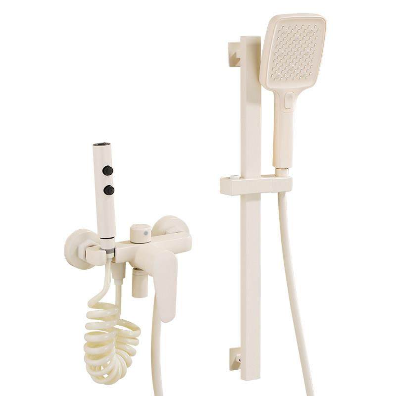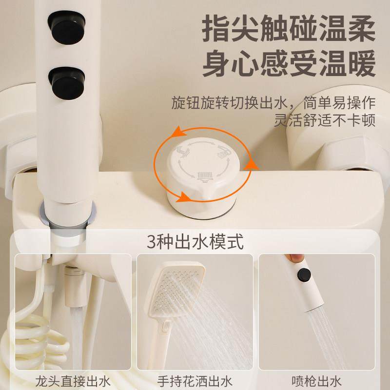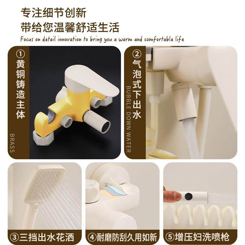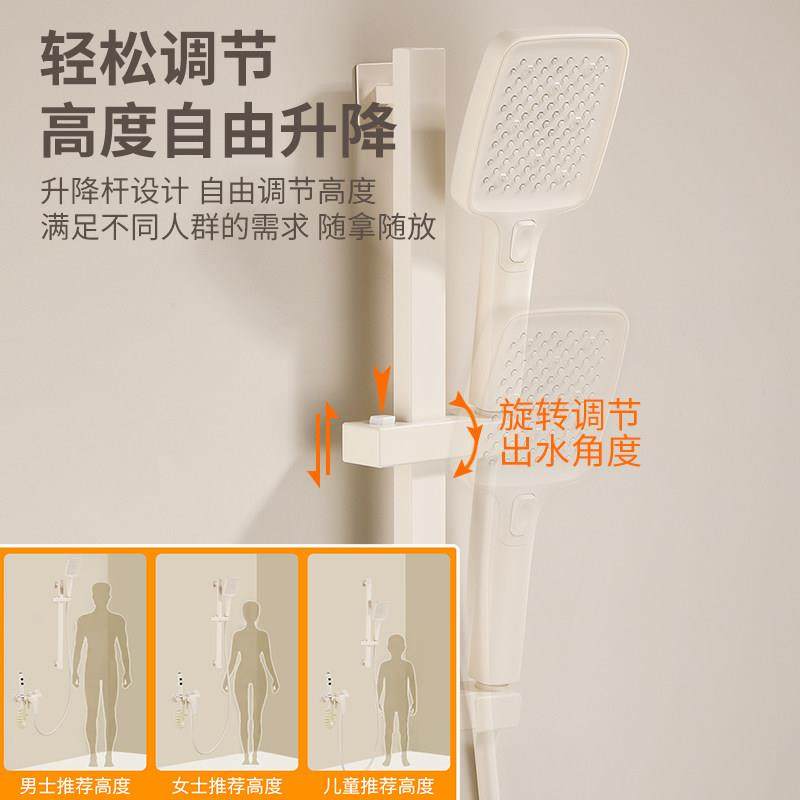 奶油白浴室淋浴花洒免打孔 全铜龙头 妇洗增压喷枪升降淋雨花洒