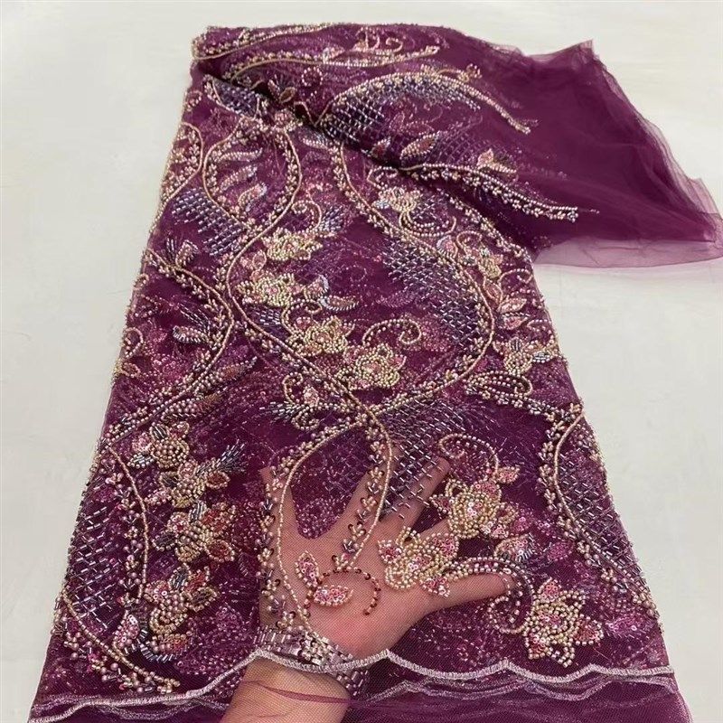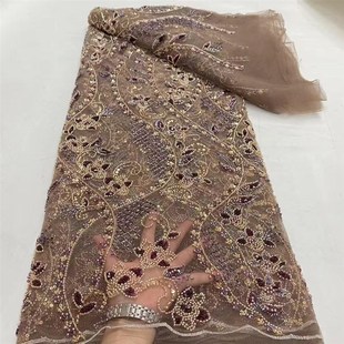 欧美重工珠管珠子亮片刺绣网纱时装 lace 布料晚宴礼服L辅料beads