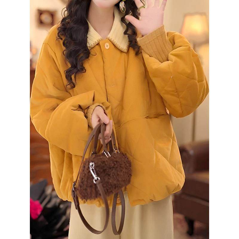 减龄夹棉圆领棉服爆款 女士黄色时尚 加厚棉衣短外套 新款 2025秋冬季