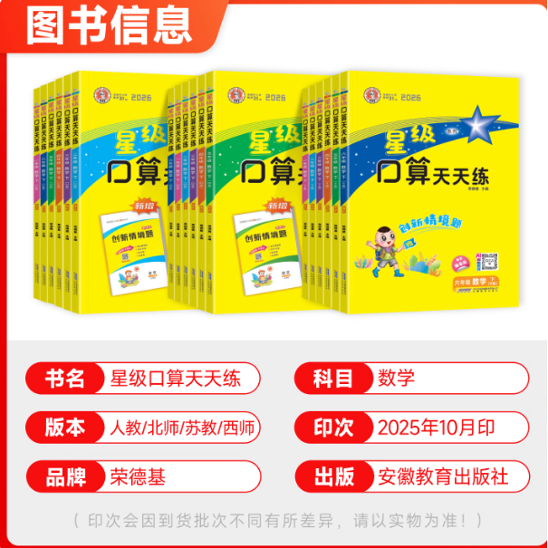 小学应用题思维训练计算题卡同步练习册寒假作业北师大版 2026新版 星级口算天天练一年级二年级三四五六年级上册下册数学人教版
