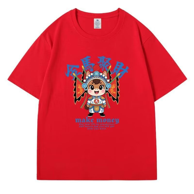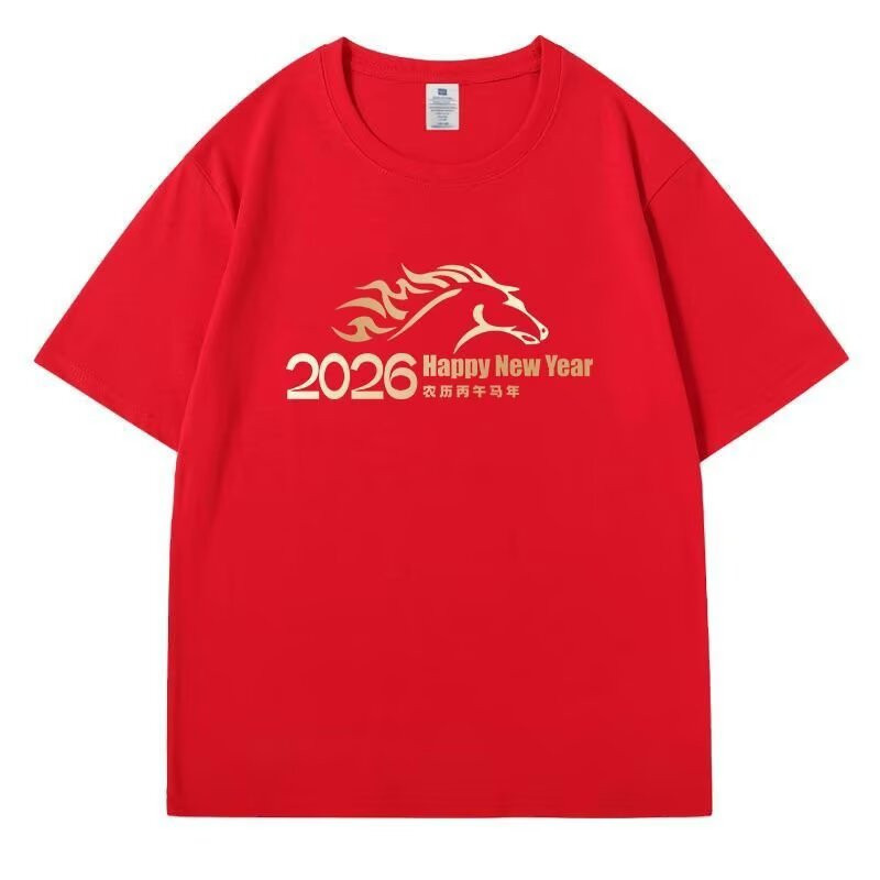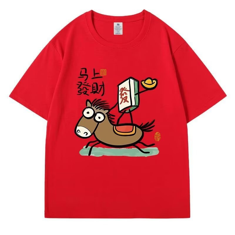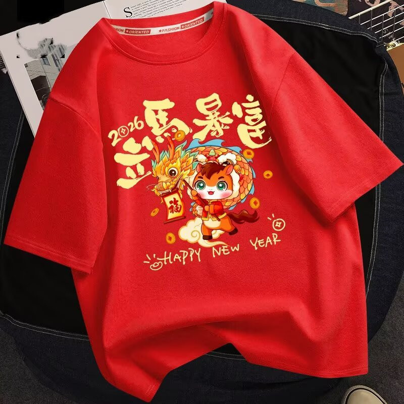 爆款 上衣2026新款 马本命年衣服 t恤女新年宽松半袖 全红色纯棉短袖