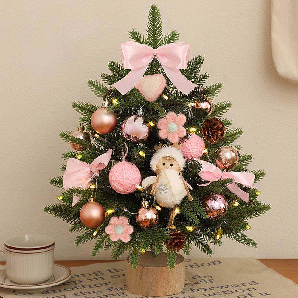 圣诞树小型桌面摆件45cm仿真小树发光圣诞节装 饰品迷你松针树