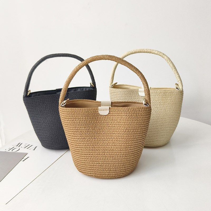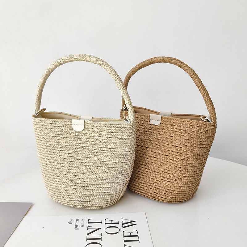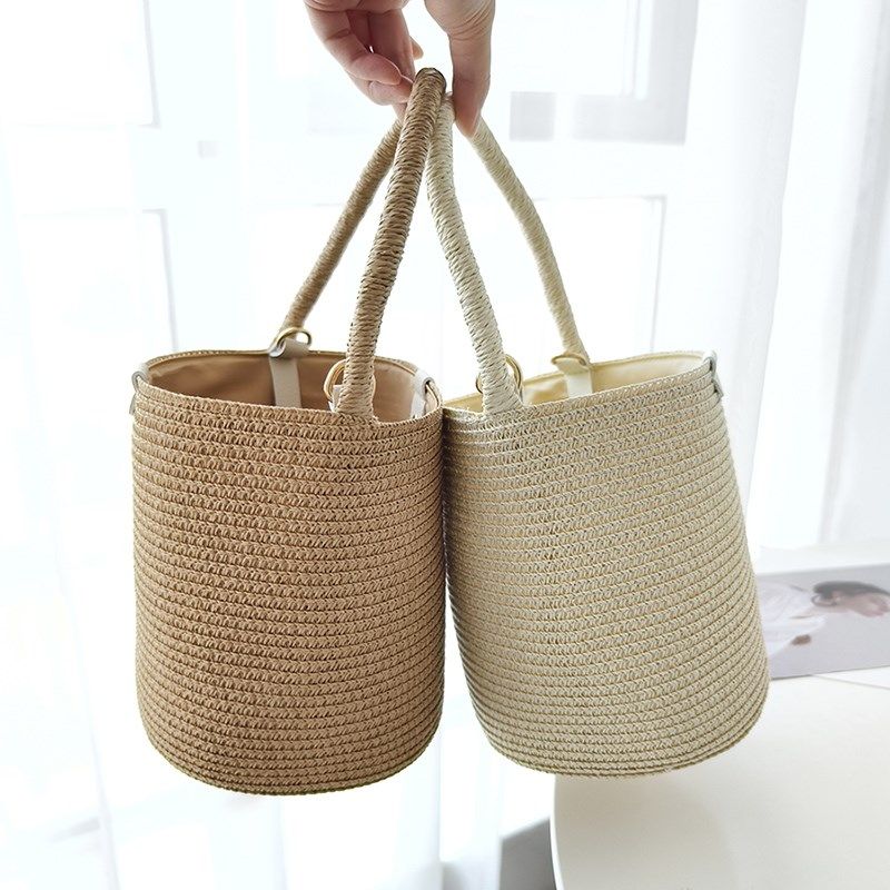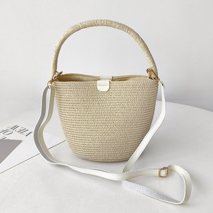 度假出游草编包包夏季 单肩手提水桶包斜背沙滩包女士草包2024新款