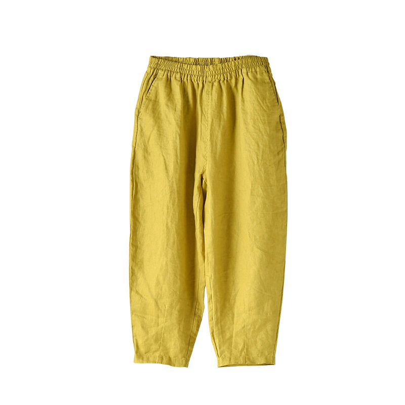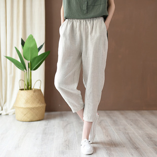 松紧腰萝卜裤 2025秋季 女亚麻宽松哈伦裤 棉麻文艺休闲九分裤 新品