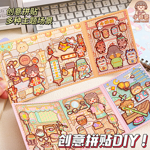小麻薯女孩安静书新款 饰创意素材贴儿童解压益智玩具手工制作磁力贴安静书 秘境来信免裁剪立体书diy贴纸装
