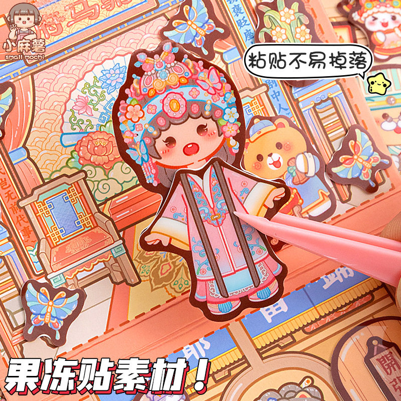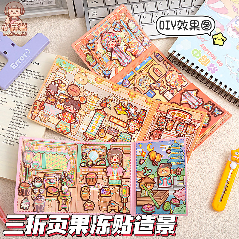 小麻薯果冻贴安静书新款 女孩免裁剪儿童手工制作diy材料创意解压学生玩具立体粘贴画可爱卡通手帐贴纸本书本