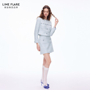 朗姿莱茵福莱尔华丽钻饰编织花呢套装 裙矜贵复古香风外套26春新款