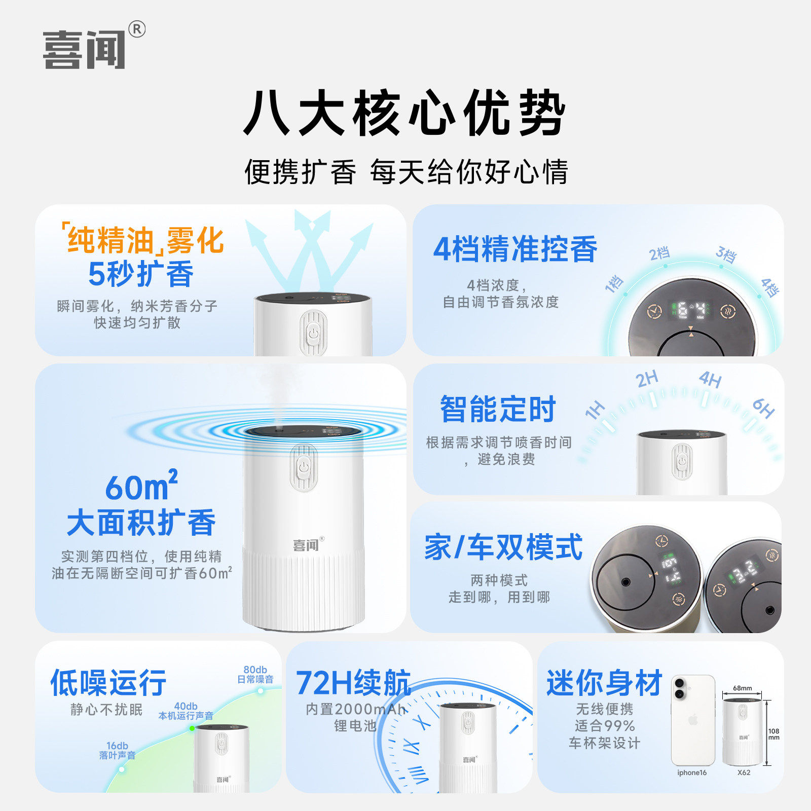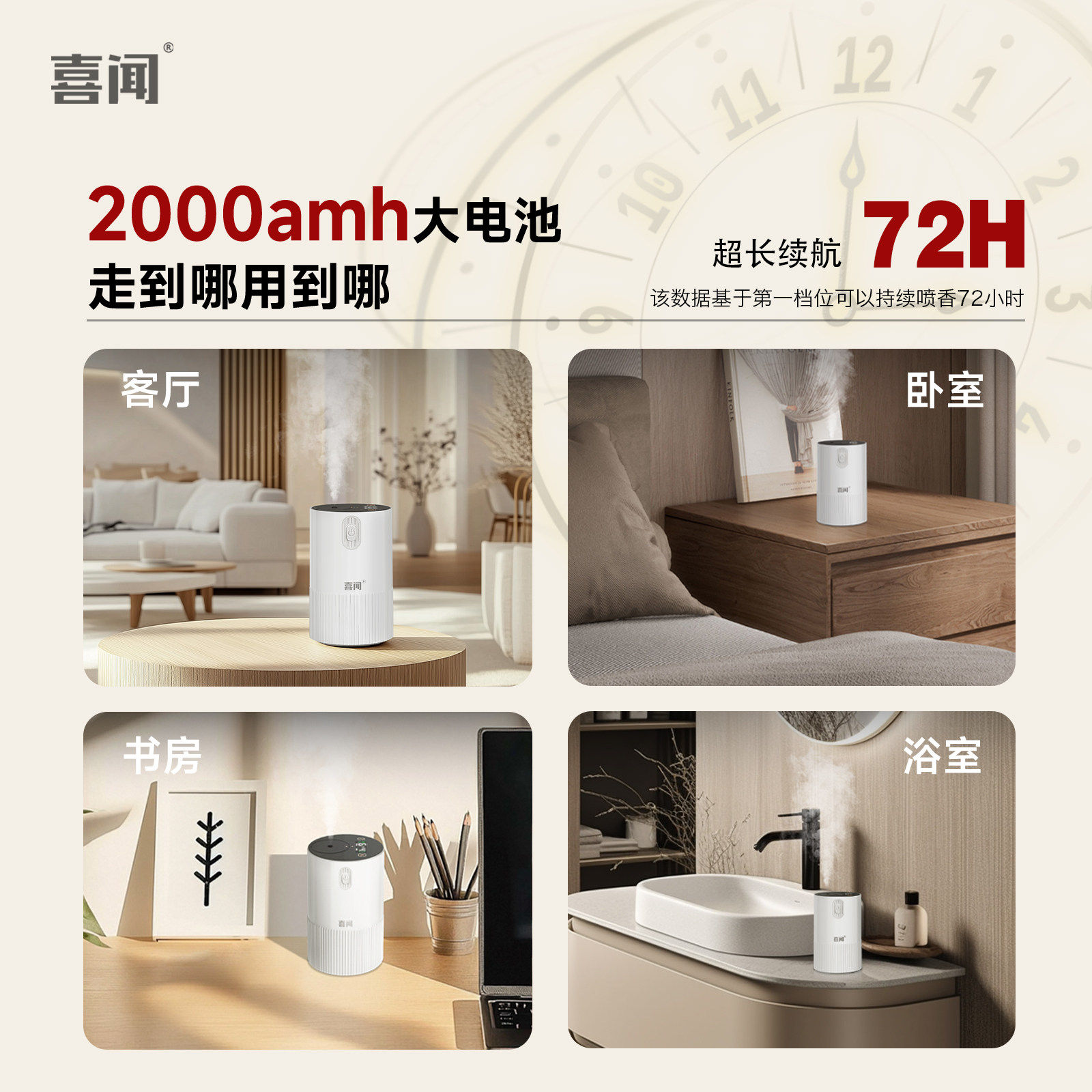 喜闻无水香薰机自动喷香纯精油专用冷香仪家用客厅充电二流体扩香