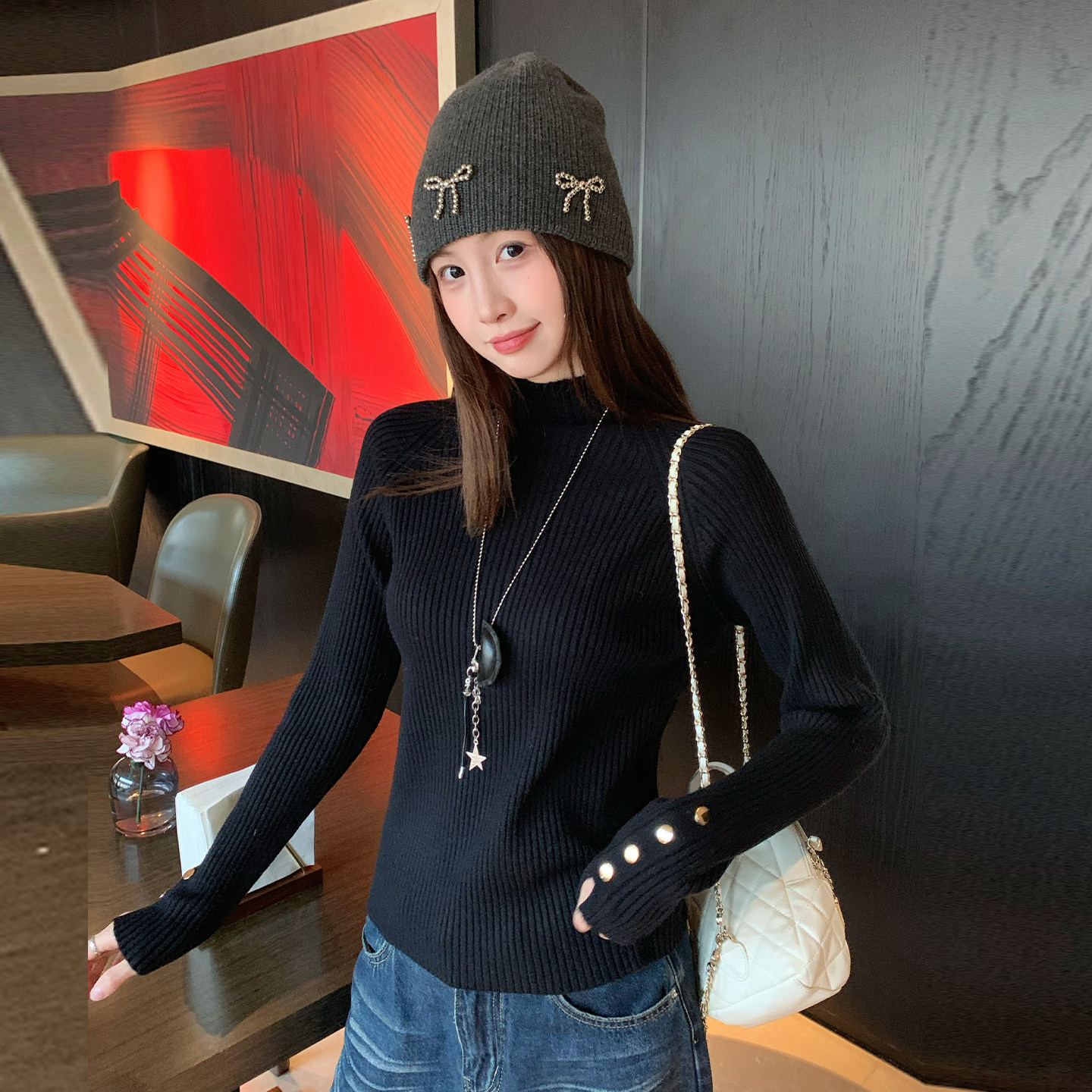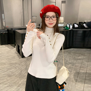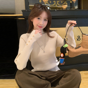 高级感针织上衣 新款 龙妹家咖棕色半高领打底衫 毛衣女内搭2025冬季