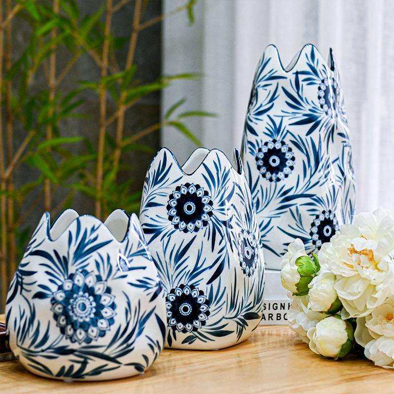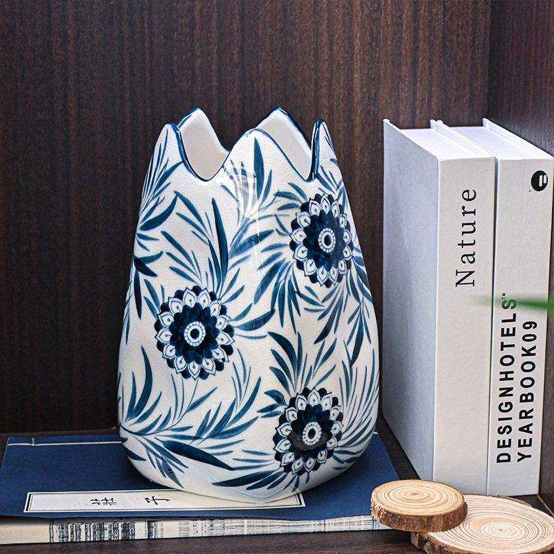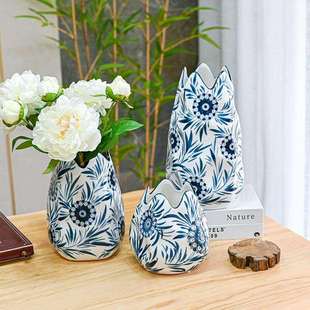 手绘青花瓷花瓶中式 饰摆件纯手工 客厅玄关插花工艺品房间陶瓷装