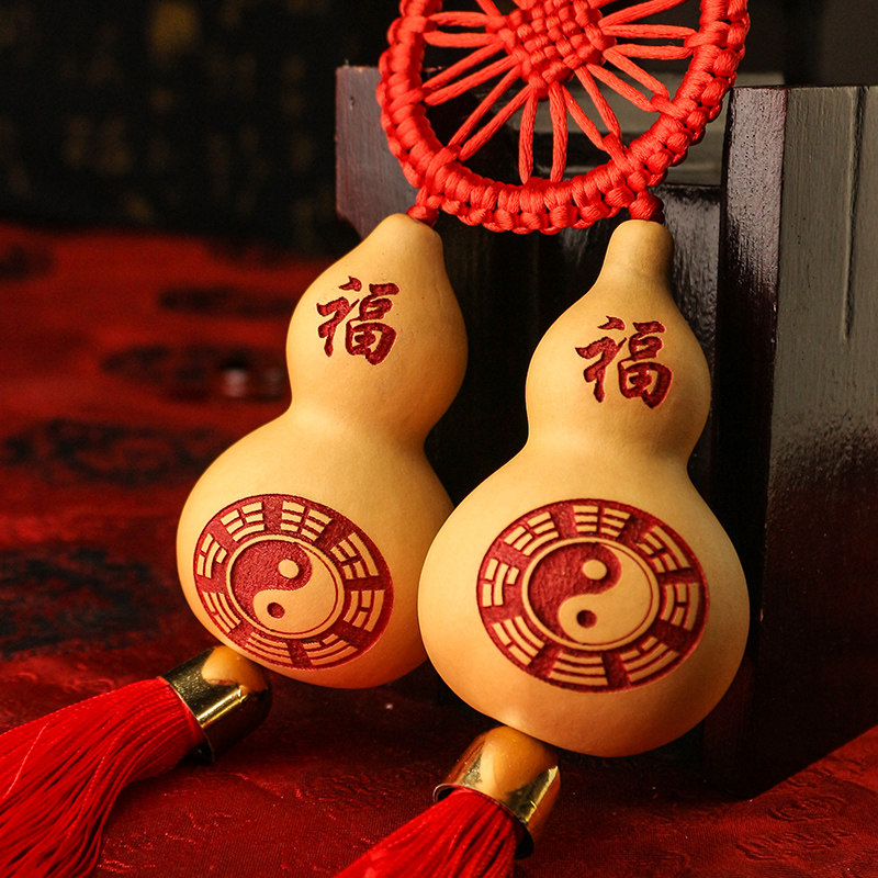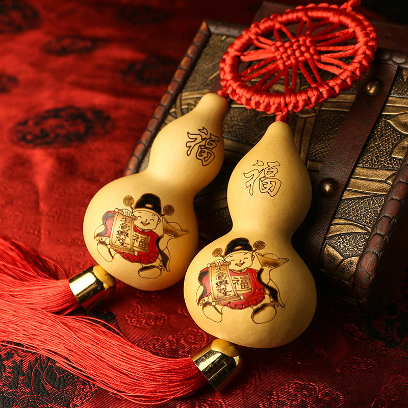 天然葫芦挂件门对门家居大门玄关卧室复古流苏莲花中国结挂饰平安