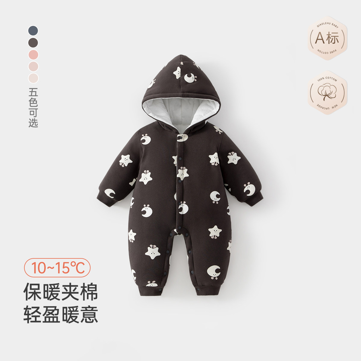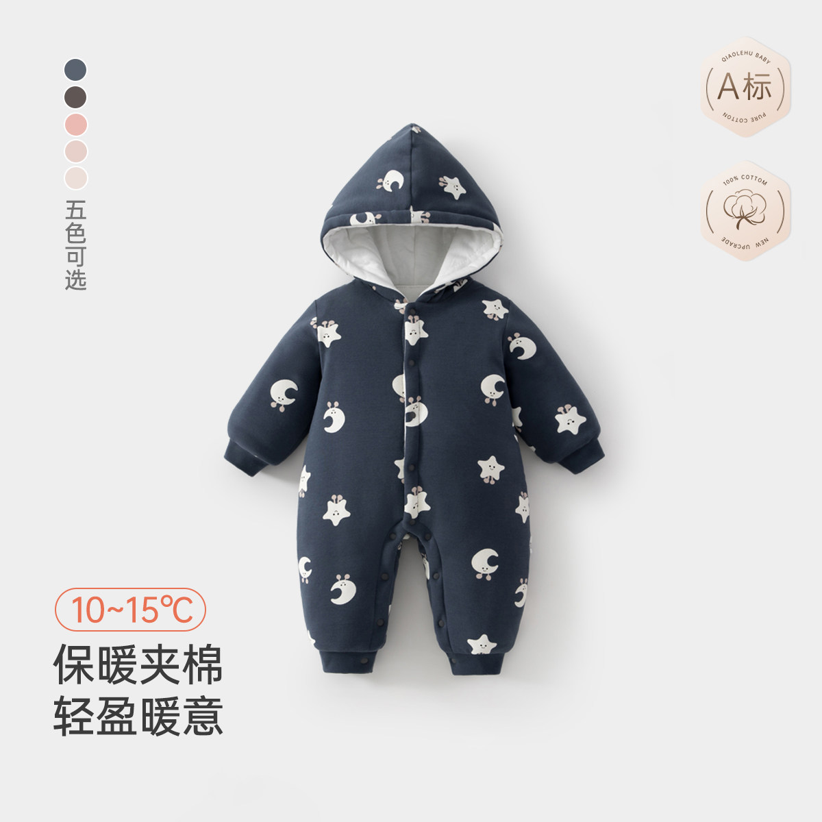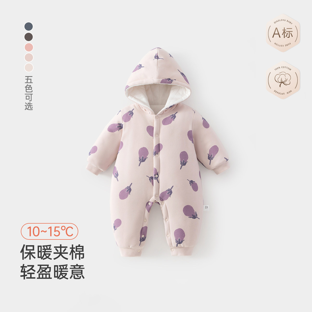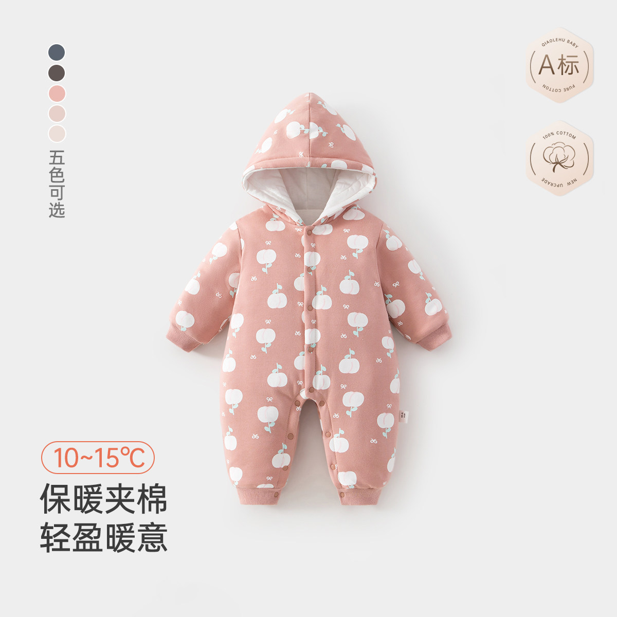 女宝宝夹棉连体衣冬季 棉服婴儿150克加棉加厚带帽外出服哈衣爬服