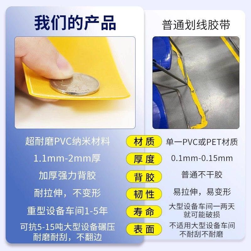 重载型划线胶带PVC纳米地胶警示胶带AGV磁条保护胶带超厚耐磨抗压