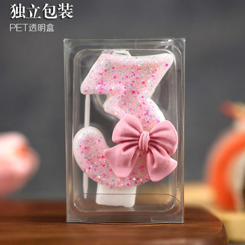 网红创意高级感可爱粉色蝴蝶结数字儿童生日蜡烛装 饰蛋糕用氛围感