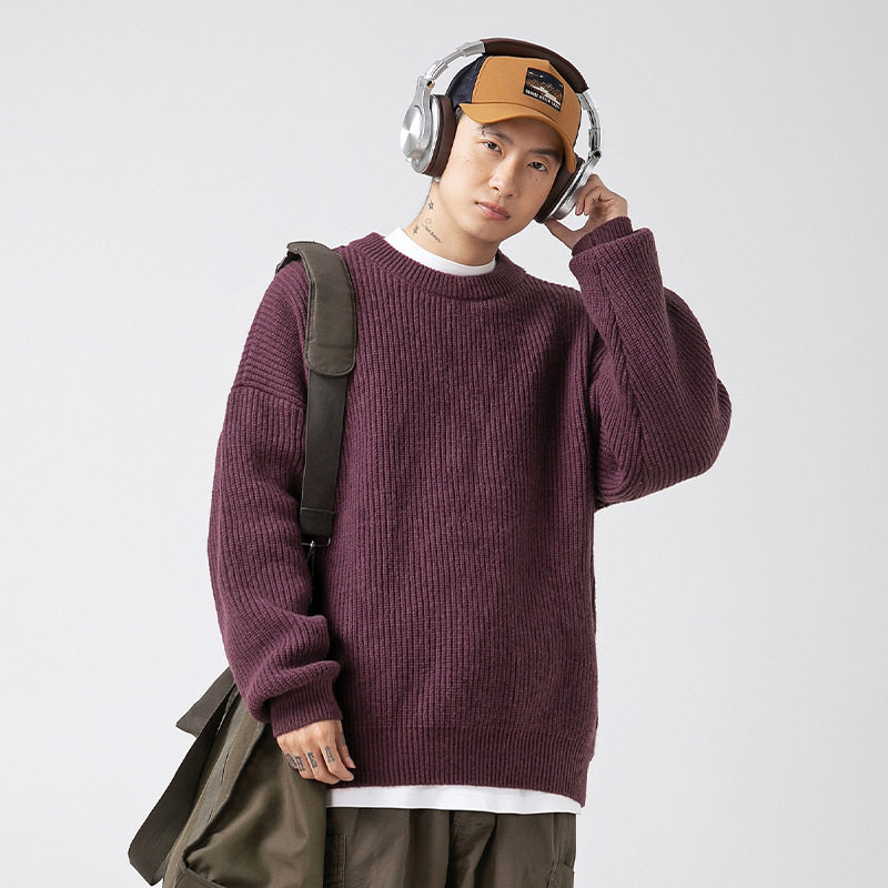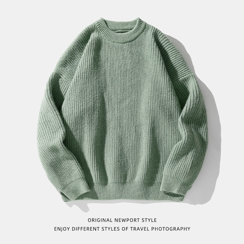 男秋冬季 复古雪尼尔圆领毛衣保暖慵懒内搭打底针织衫 美式 马登工装